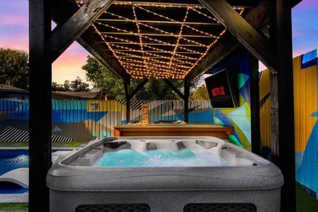 • Pergola w/ 2 hot tubs + table bar + smart TV