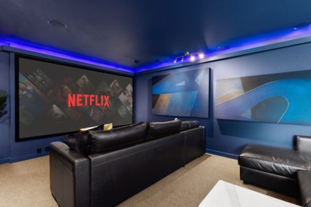 • Movie theater w/ projection screen + projector + Xbox Series X w/ game pass + 2 large comfortable sectional sofas