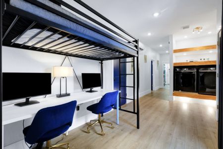 • Office area: 1 twin-sized bed (bunk bed), 2 desks + 2 chairs + printer