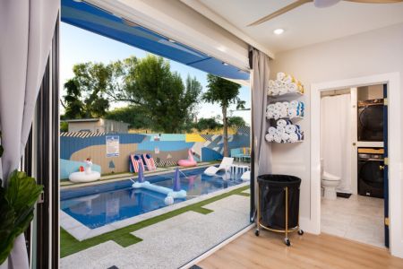 • Pool w/ chaise lounge chairs + colorful child’s life savers