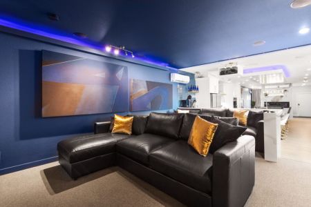 • Movie room: 2 queen-sized sleeper sofas for 4 additional guests
