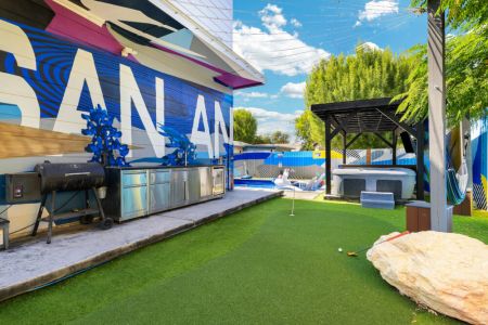 🌴 Spacious backyard: electric pellet smoker, mini golf, outdoor kitchen & more