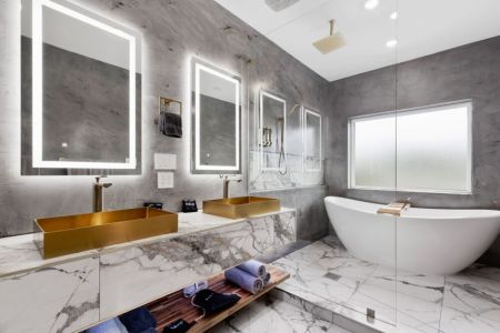 • Primary bathroom: Ensuite to primary bedroom w/ luxury standalone tub, walk-in shower, dual vanity + separate bidet