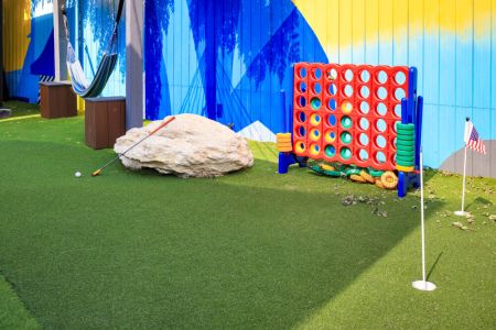 • Private backyard w/ mini golf + electric pellet smoker + mini fridge + hammock