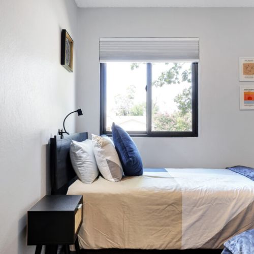• Third bedroom: 2 twin-sized beds, bedside table + lamp, walk-in closet