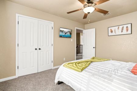 • Third bedroom: Second floor, queen-sized bed, smart TV, bedside table + lamp, closet