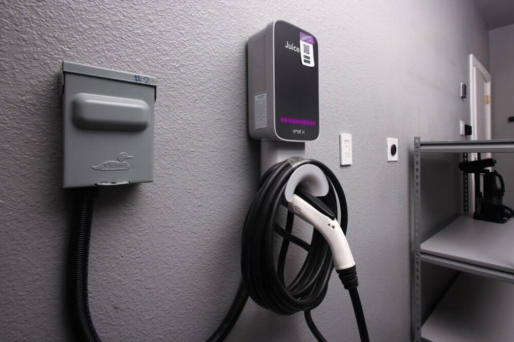 We offer an EV charging station for your convenience (Juice Box Level 2 & 220v Charge Port).