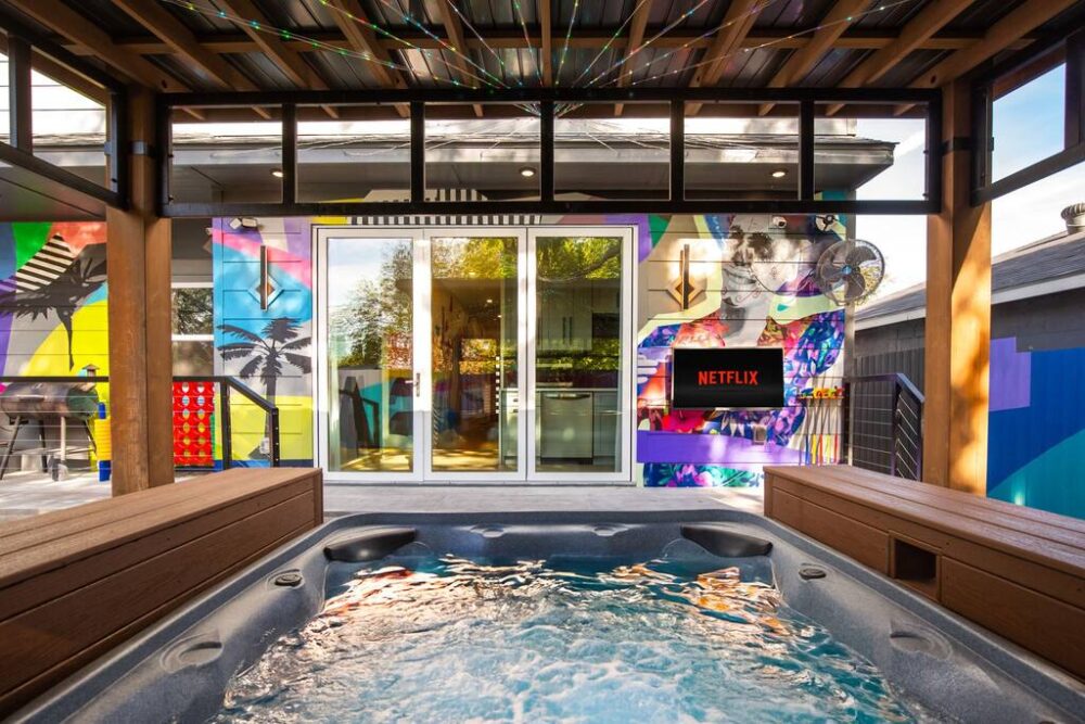 • Hot tub w/ pergola + table bar + smart TV