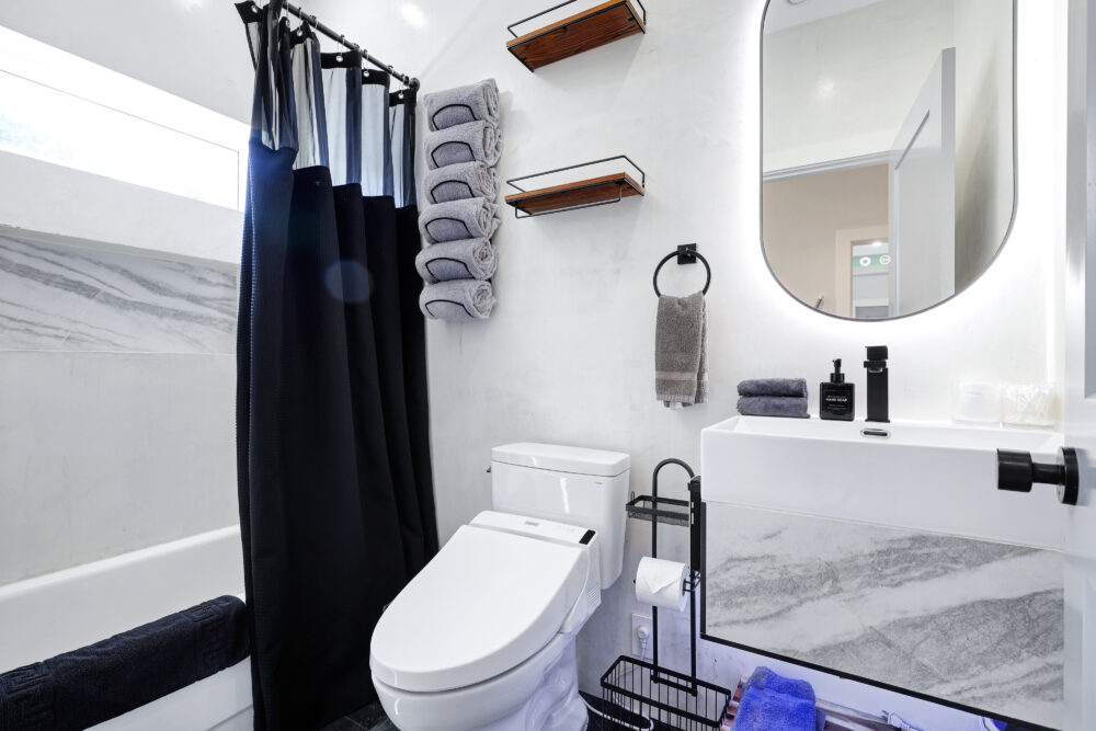 • 4 full bathrooms + 1 half bath; essential toiletries provided