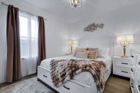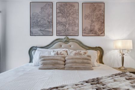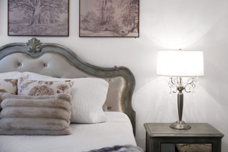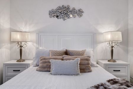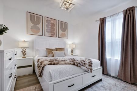 • Second bedroom: Queen-sized bed, bedside table + lamp, closet + dresser + bed frame storage drawers
