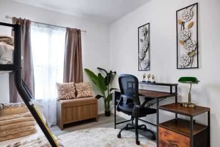 • Fourth bedroom: 1 Full-sized bed and 1 twin-sized bed (bunk bed), desk + ergonomic chair, bedside table