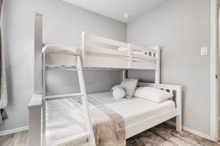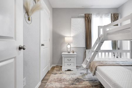 • Third bedroom: Full-sized bed and twin-sized bed (bunk bed), bedside table + lamp, closet