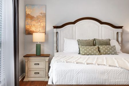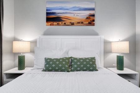 • Second bedroom: Queen-sized bed, bedside table + lamp, closet + dresser