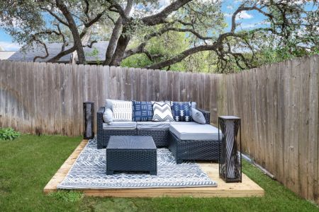 • Private large backyard w/ patio seating + table and 6 chairs
