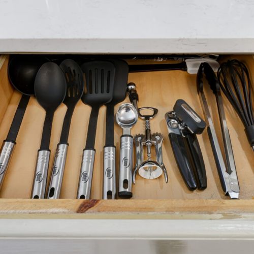 • Fully stocked kitchen w/ stainless steel appliances (including refrigerator/freezer w/ in-built water + ice dispenser)
