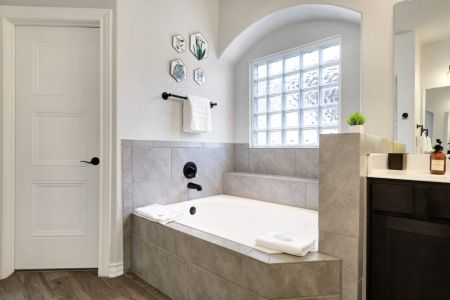 • Primary bathroom: Ensuite to primary bedroom w/ luxury standalone tub, walk-in shower, dual vanity + separate toilet