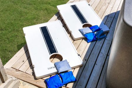 • Games galore; giant 4-in-a-row, axe throwing game, poker set + board games, cornhole set