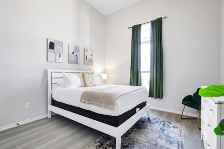• Fourth bedroom: Queen-sized bed, bedside table + lamp, dresser