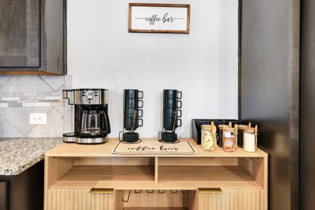• Fully stocked kitchen + coffee bar