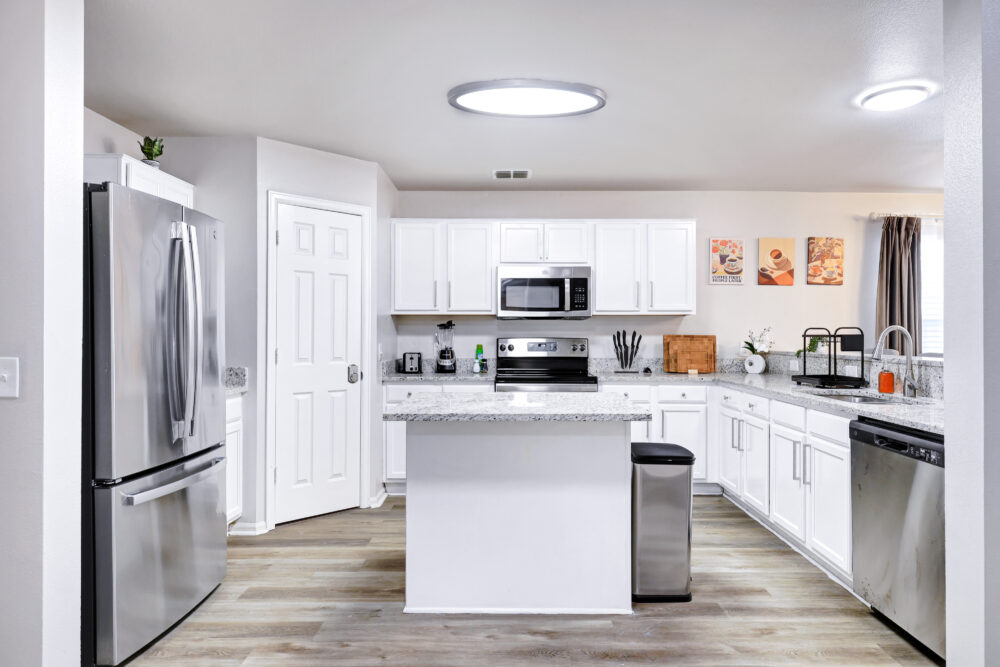 • Fully stocked kitchen w/ stainless steel appliances (including refrigerator/freezer w/ in-built ice dispenser)