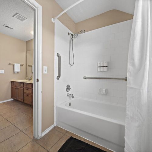• Bathroom 2: Ensuite to bedroom 2 w/ walk-in shower + additional access from hallway