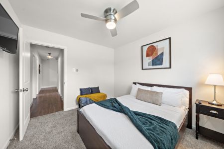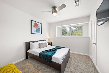 • Second bedroom: Full-sized bed, smart TV, bedside table + lamp, closet+ ensuite bathroom