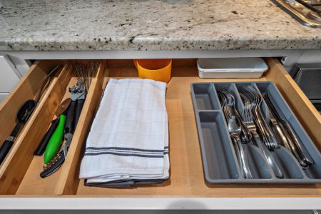 • Fully stocked kitchen w/ stainless steel appliances (including refrigerator/freezer w/ in-built water + ice dispenser)