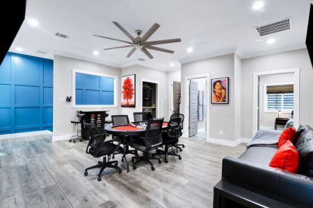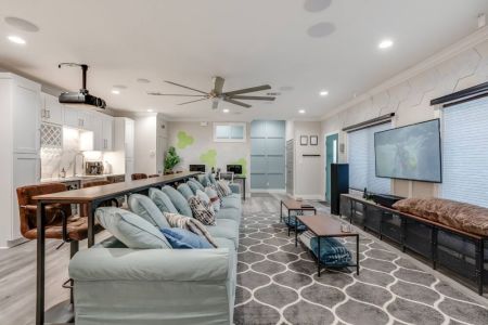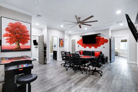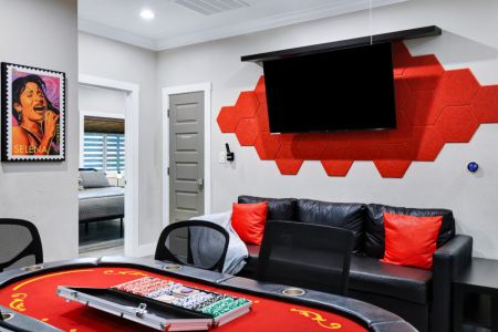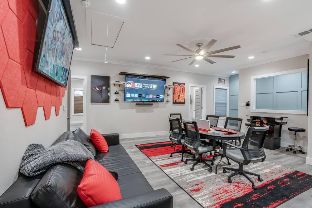 • Game room w/ poker table + cocktail arcade machine + Xbox One X, foosball table, couch + 2 smart TVs