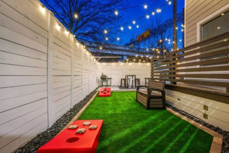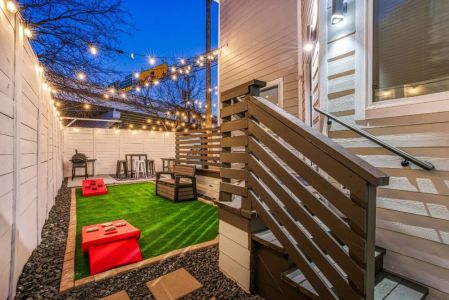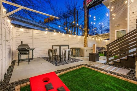 • Private backyard and large patio w/ outdoor lounge furniture + table and chairs
