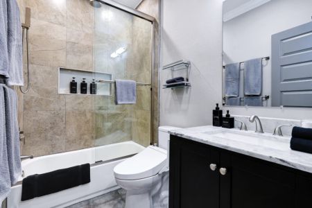 • Bathroom 2: Shared bathroom between bedroom 2 & 3 w/ shower/tub combo, dual vanity + bidet