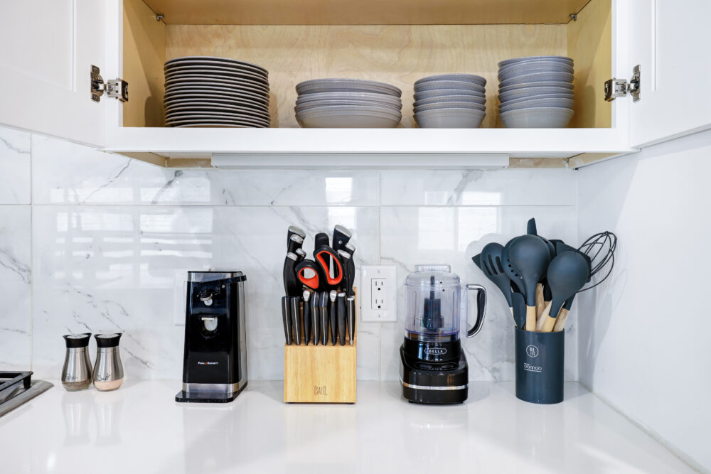 • Toaster, blender, kettle, crockpot + basic cookware & dinnerware
